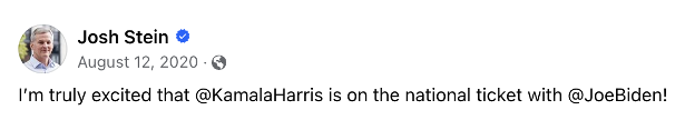 Josh Stein is Kamala Harris and Joe Biden's biggest fan in North Carolina.